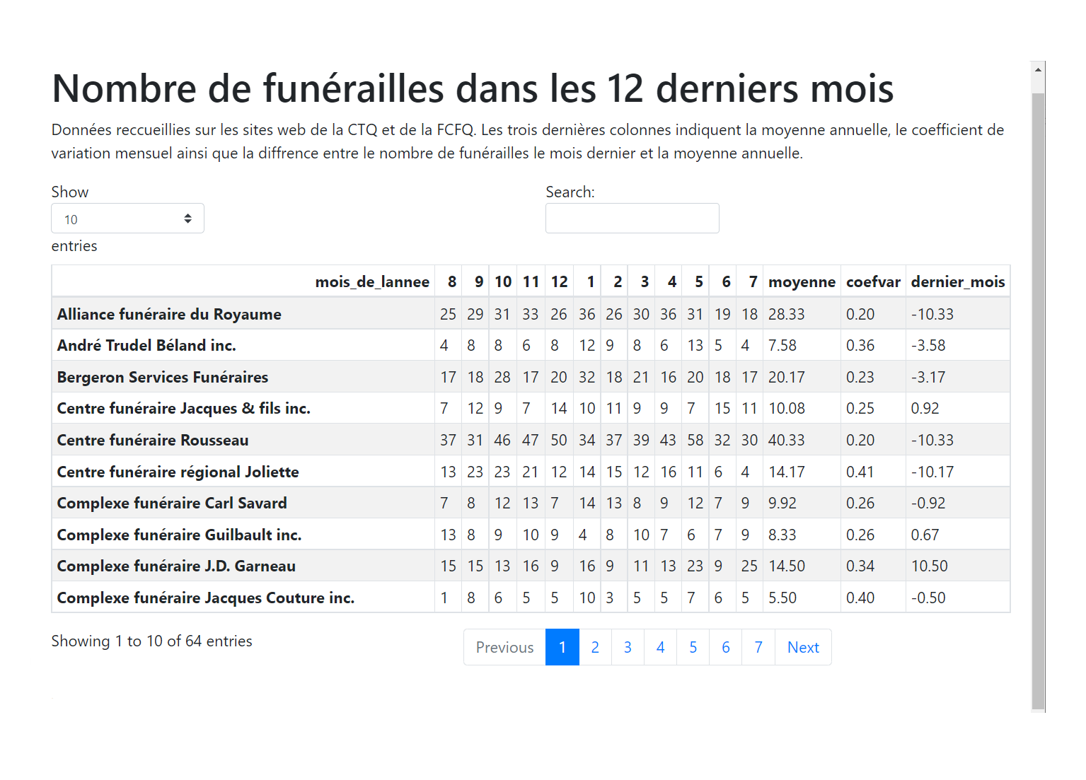 ainsi que la diffrence entre le nombre de funérailles le mois dernier et la moyenne annuelle.